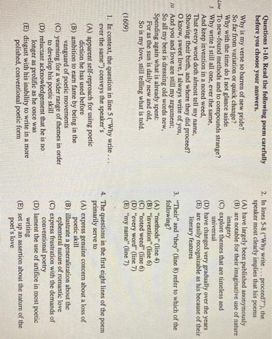 Questions 1 10 Read The Following Poem Carefully Chegg Com